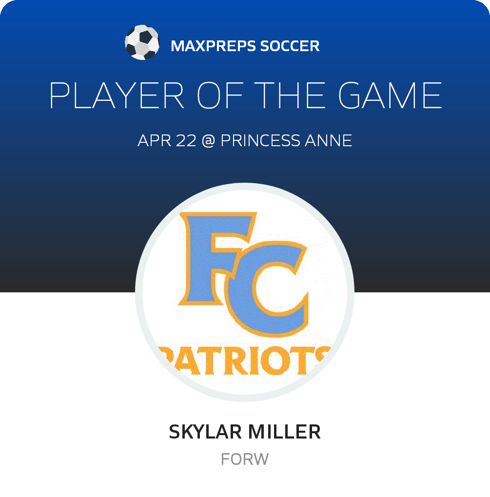 Princess Anne gets on the board early in the first half with a break away. 6 minutes later Sydney Miller ties it up. Skylar Miller puts the Patriots ahead going into half 2-1. Skylar scores again, and Karleigh MInson puts the game away 4-1 with 12 minutes to go.