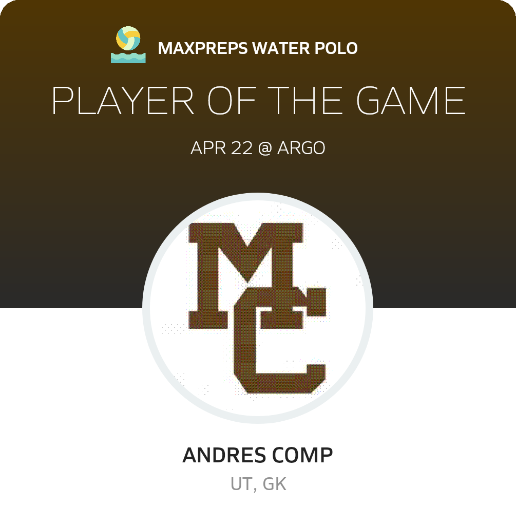 Congratulations to #2 Andres Comp for being selected the Chicago Mt. Carmel Water Polo Player of the Game.