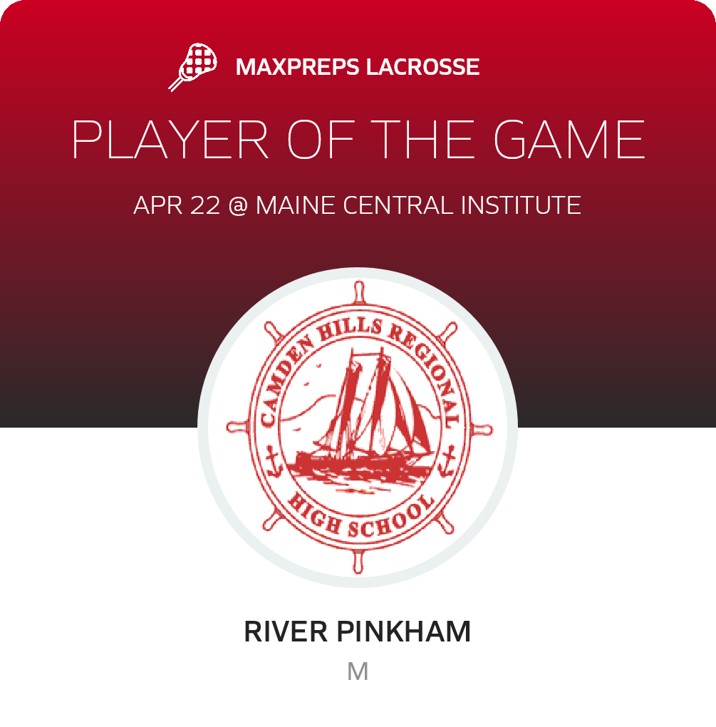 Congratulations to #15 River Pinkham for being selected the Camden Hills Lacrosse Player of the Game.