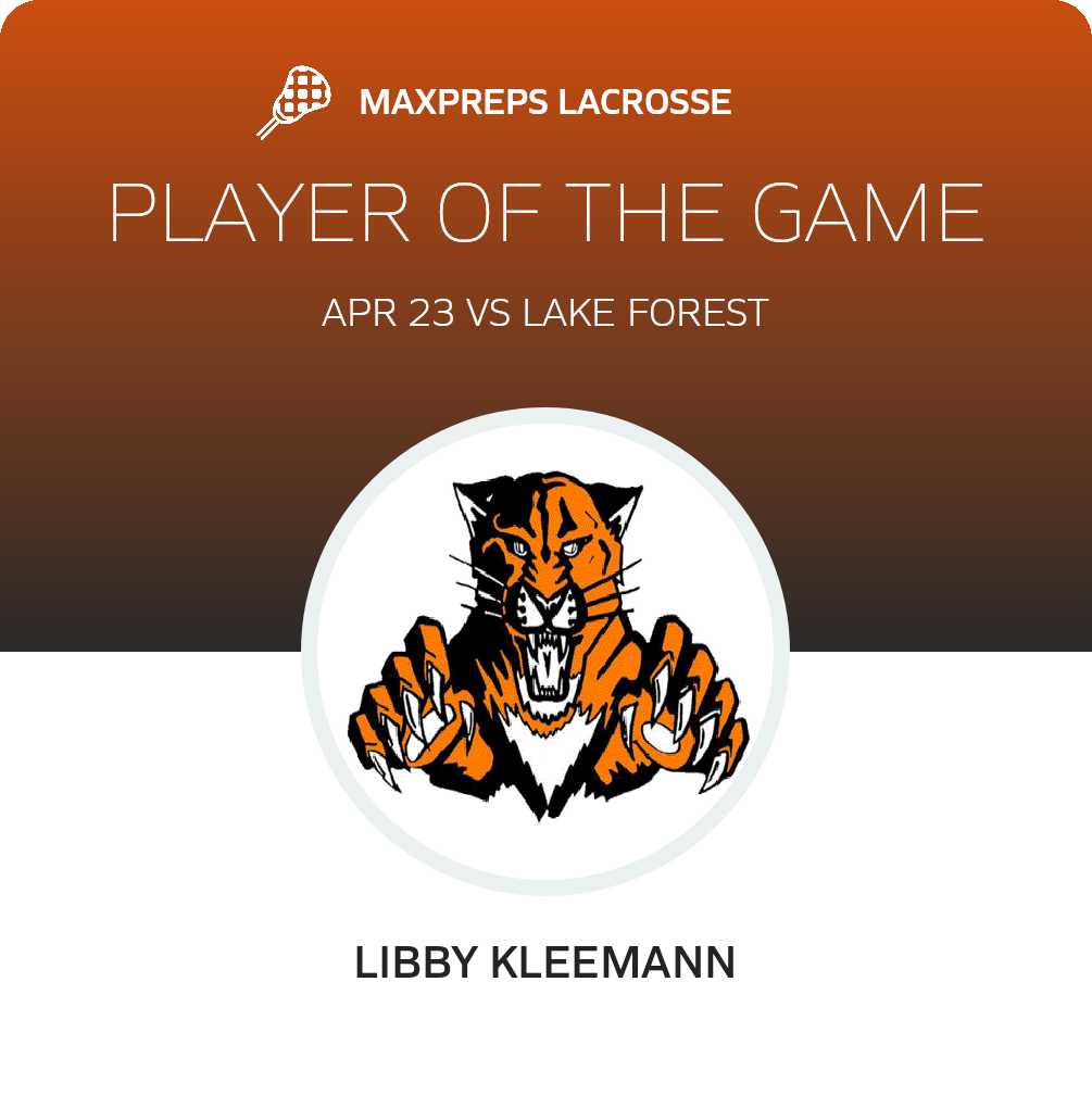 Congratulations to Libby Kleemann for being selected the Libertyville Girls Freshman Lacrosse Player of the Game.