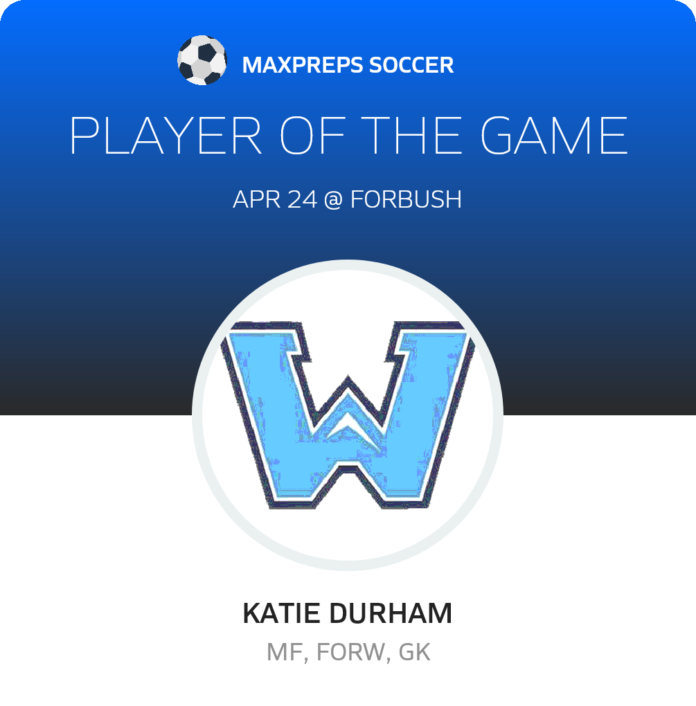 Congratulations to #3 Katie Durham for being selected the Watauga Girls Soccer Player of the Match.