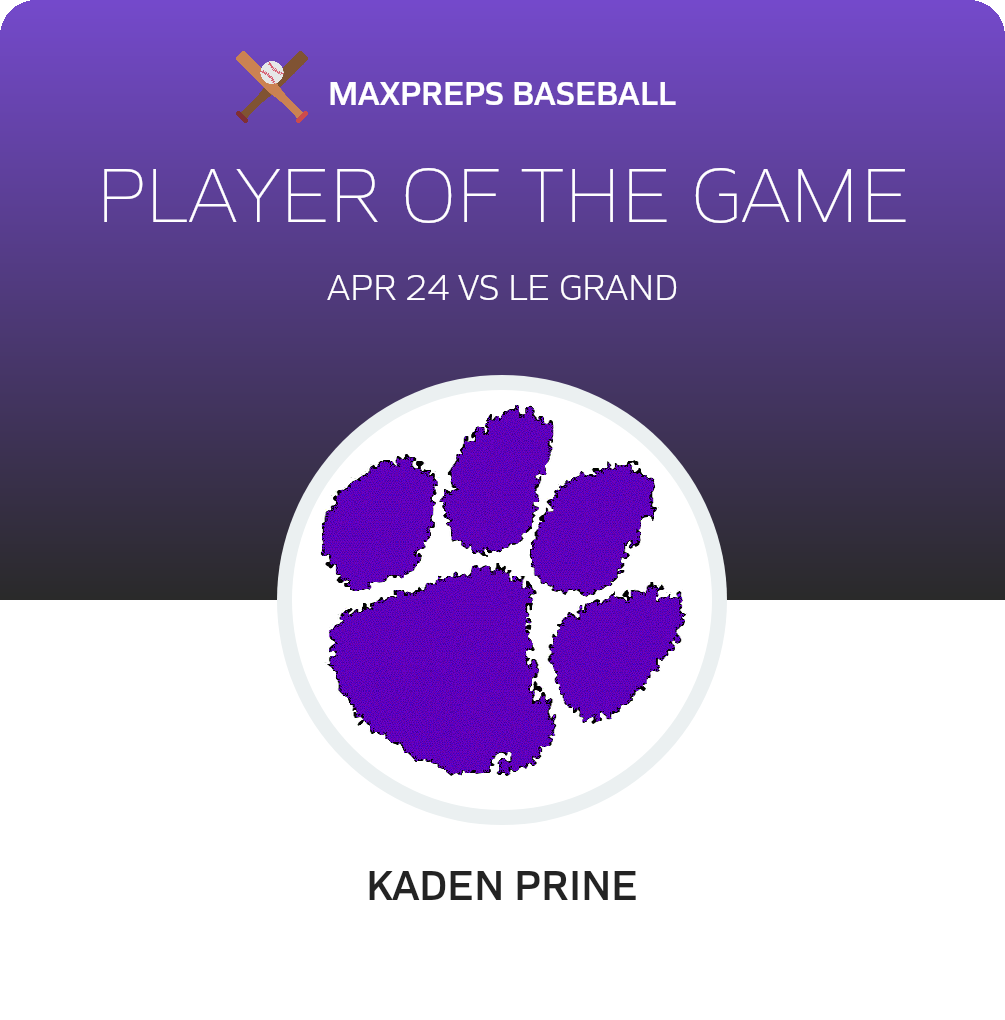 Congratulations to #15 Kaden Prine for being selected the Denair Baseball Player of the Game.