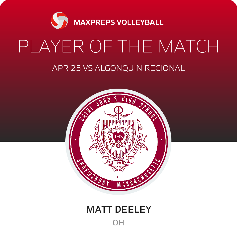 Massachusetts High School Volleyball - St. John's over Algonquin Regional