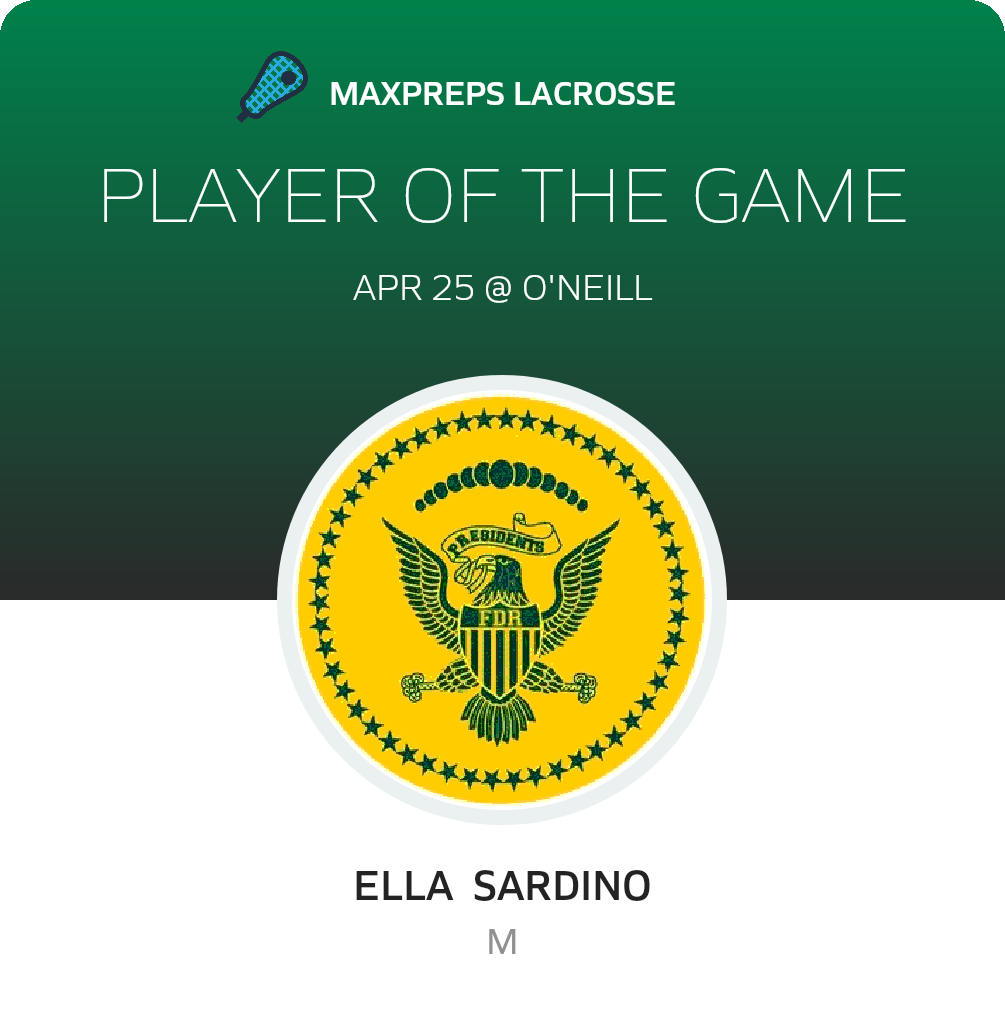 Congratulations to #1 Ella Sardino for being selected the Roosevelt Girls Lacrosse Player of the Game.