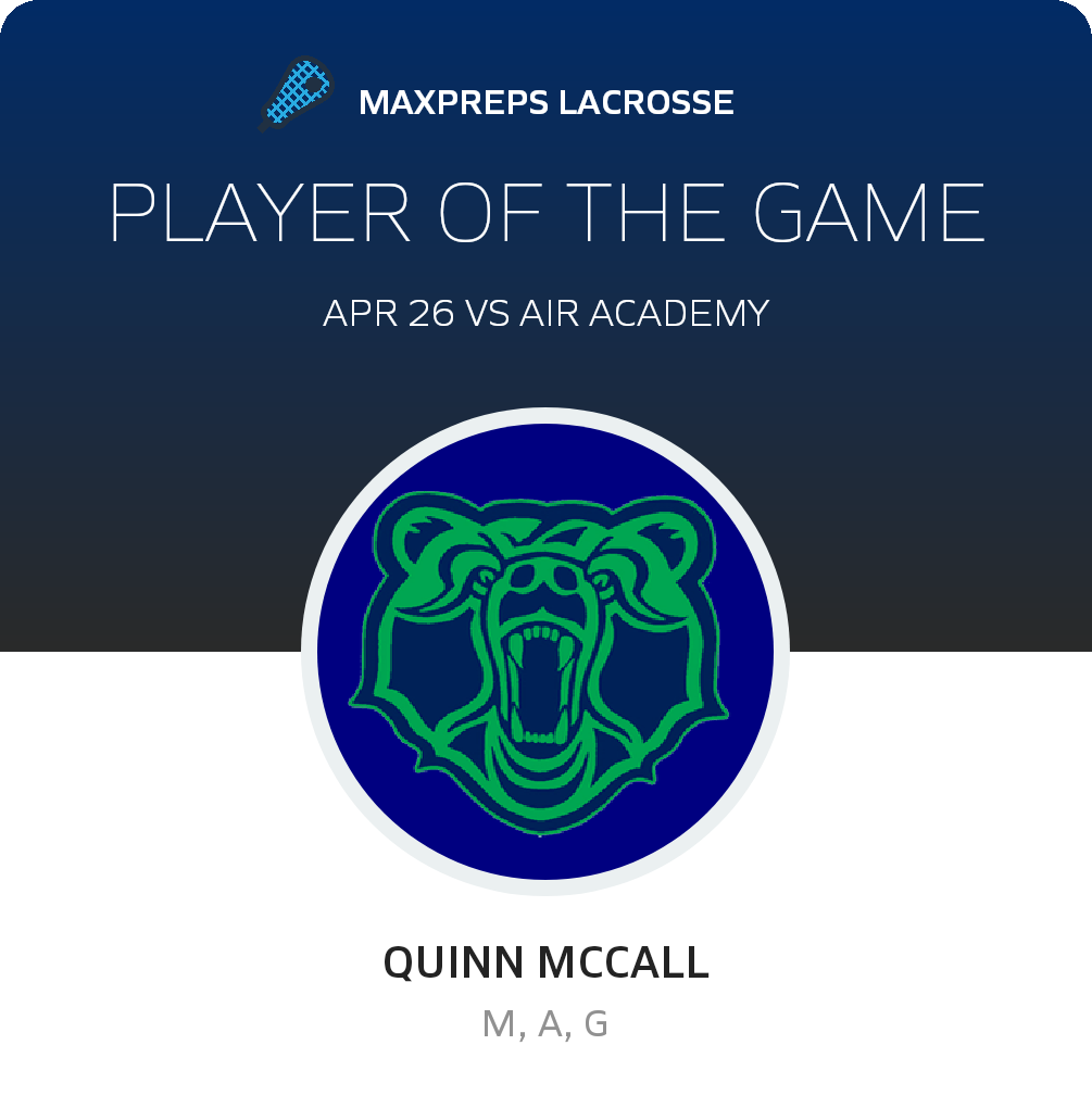April 26, 2022: Highlands Ranch, CO 80129 In Tuesday's non-league contest, the ThunderRidge Grizzlies (Highlands Ranch, CO) lacrosse squad routed the visiting Air Academy Kadets (US Air Force Academy, CO), by a count of 13-4.