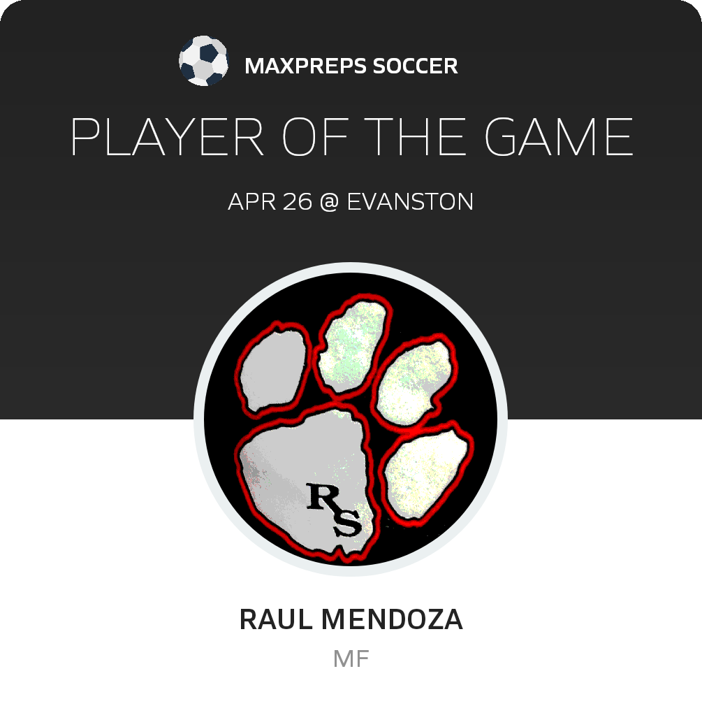 Congratulations to #29 Raul Mendoza for being selected the Rock Springs JV Soccer Player of the Match.