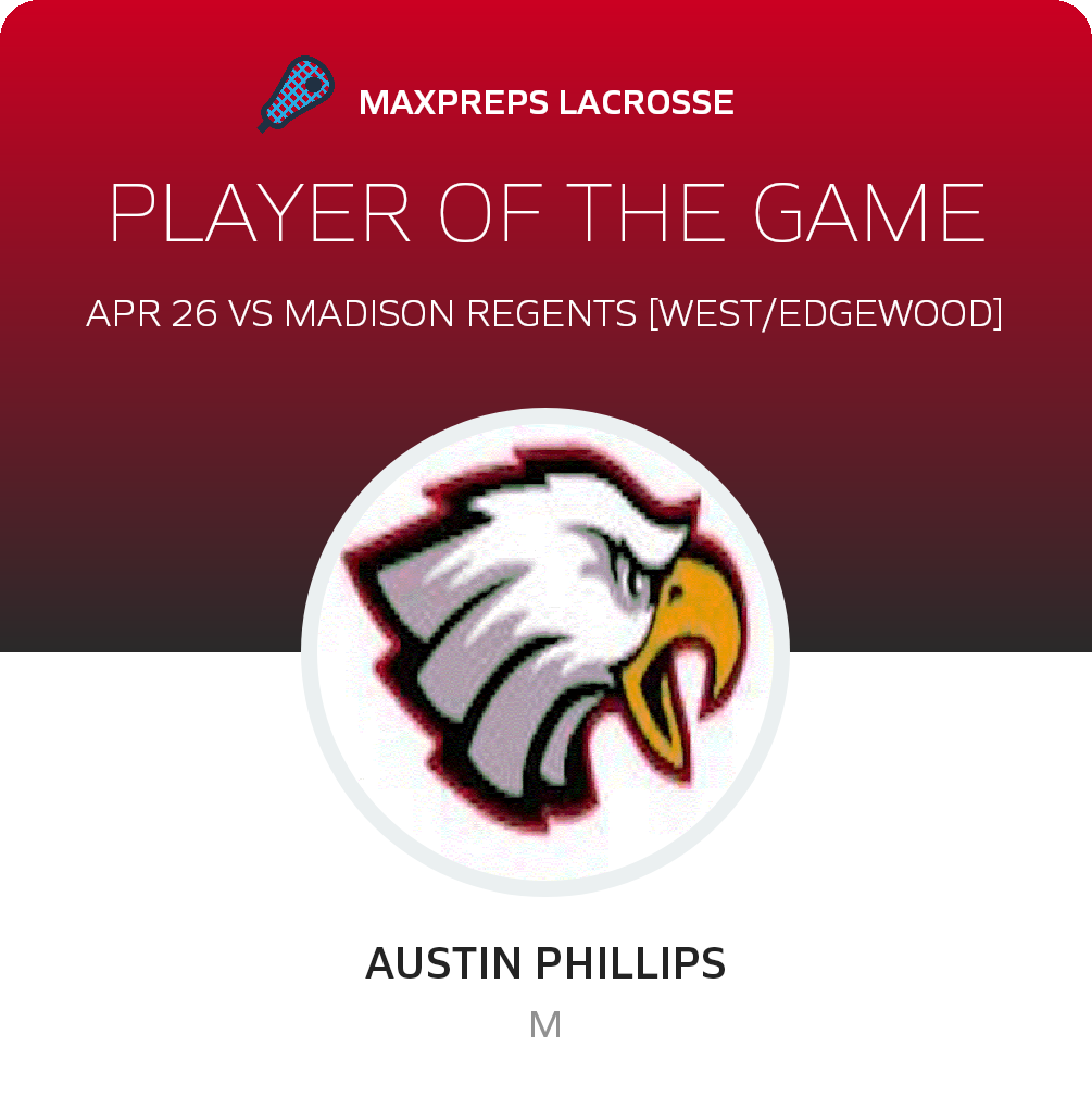 April 26, 2022: Prairie du Sac, WI 53578 In Tuesday's league test, the host Sauk Prairie Eagles lacrosse squad scored a tight 11-6 victory over the Madison Regents [West/Edgewood] .