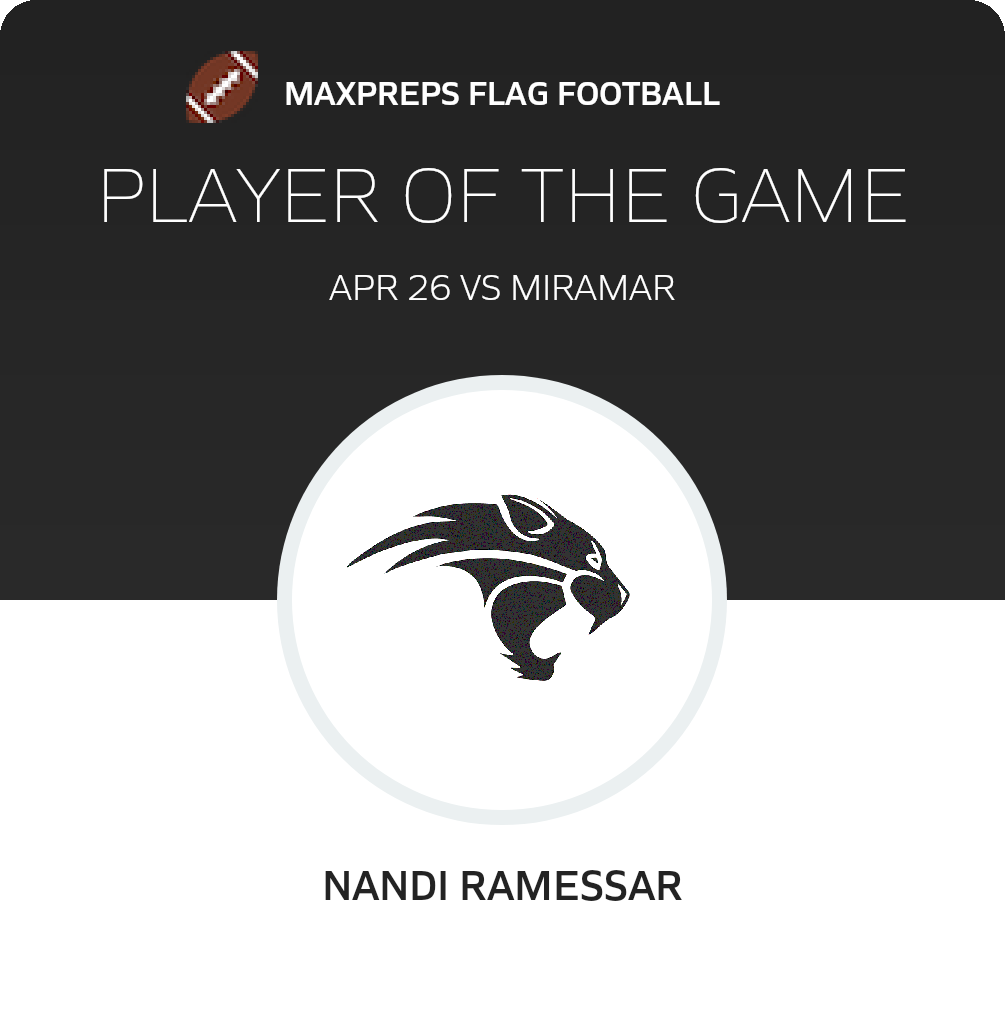 Congratulations to #11 Nandi Ramessar for being selected the Western Girls Flag Football Player of the Game.