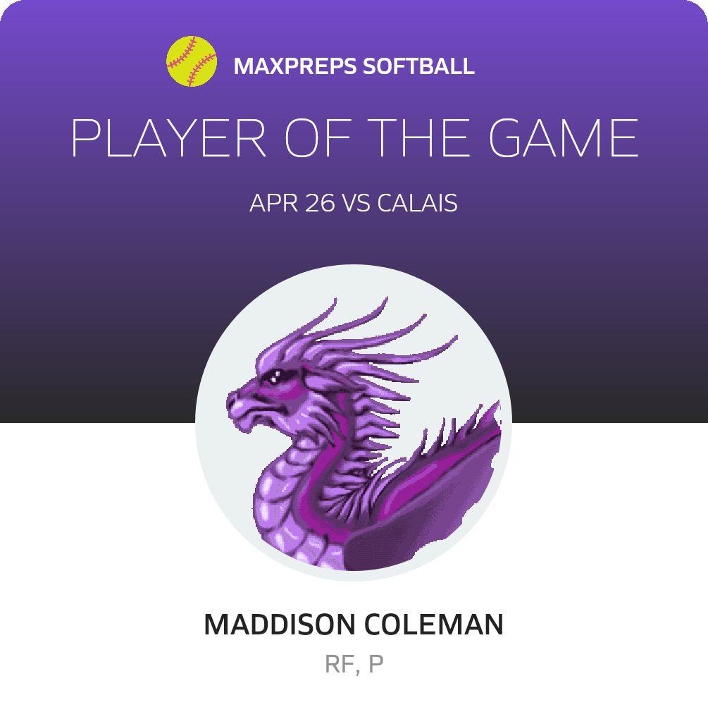 April 26, 2024: Baileyville, ME 04694 The Calais Blue Devils softball team (Calais, ME), was routed 15-0 in Friday's non-league test with the host Woodland Dragons (Baileyville, ME)