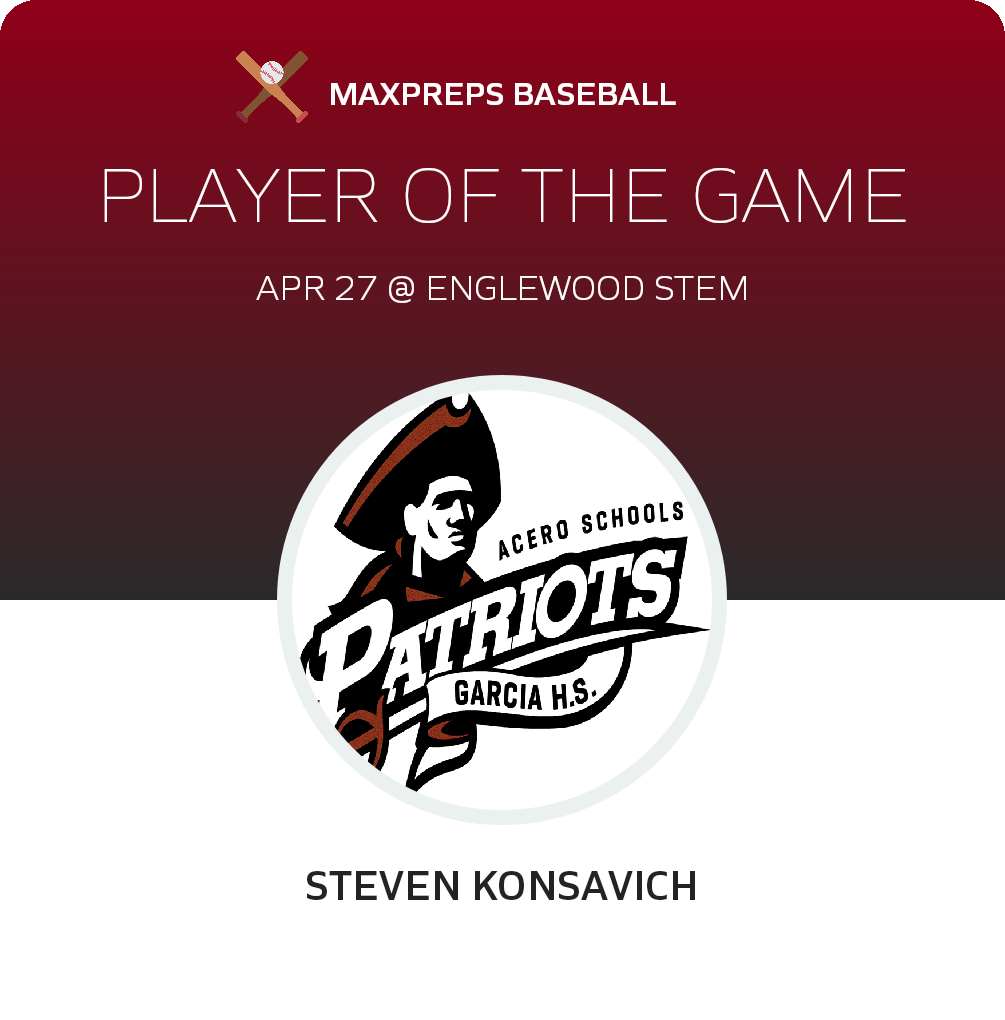 Congratulations to #44 Steven Konsavich for being selected the ACERO Garcia Baseball Player of the Game.