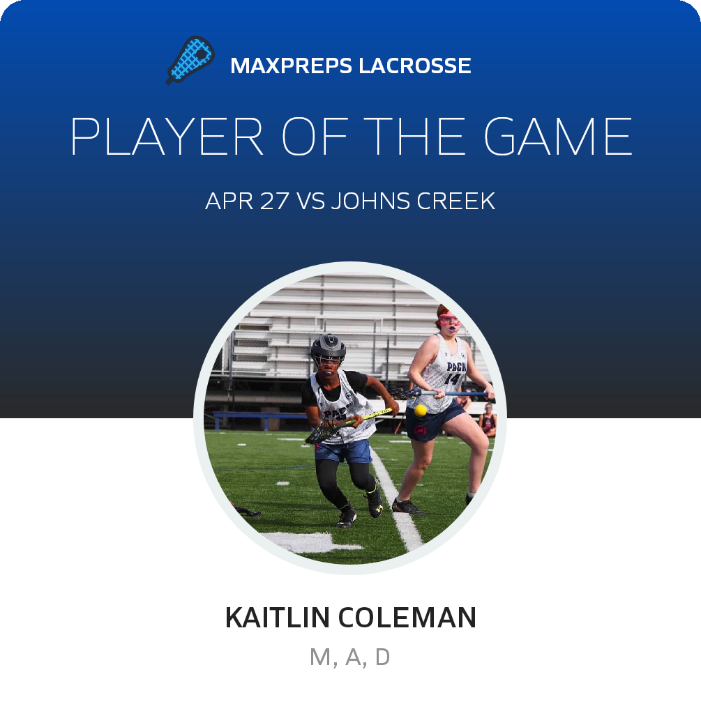 April 27, 2022: Johns Creek, GA 30022 In Wednesday's non-league contest, the Johns Creek Gladiators (Johns Creek, GA) lacrosse squad routed the visiting McEachern Indians (Powder Springs, GA), by a count of 20-2.