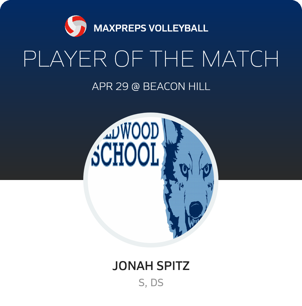 Congratulations to #12 Jonah Spitz for being selected the Wildwood Boys Volleyball Player of the Match.