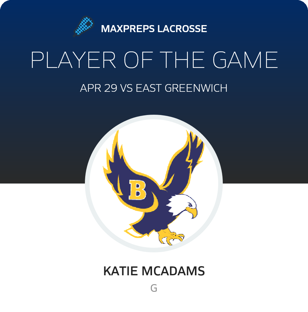 The Eagles now sport a 3-5 record. They play next when they host Portsmouth for a Division 1 (State) contest on Thursday, May 2. Barrington will confront a Patriots squad coming off a 15-4 league loss to Moses Brown (Providence, RI). The Patriots record now stands at 4-4.