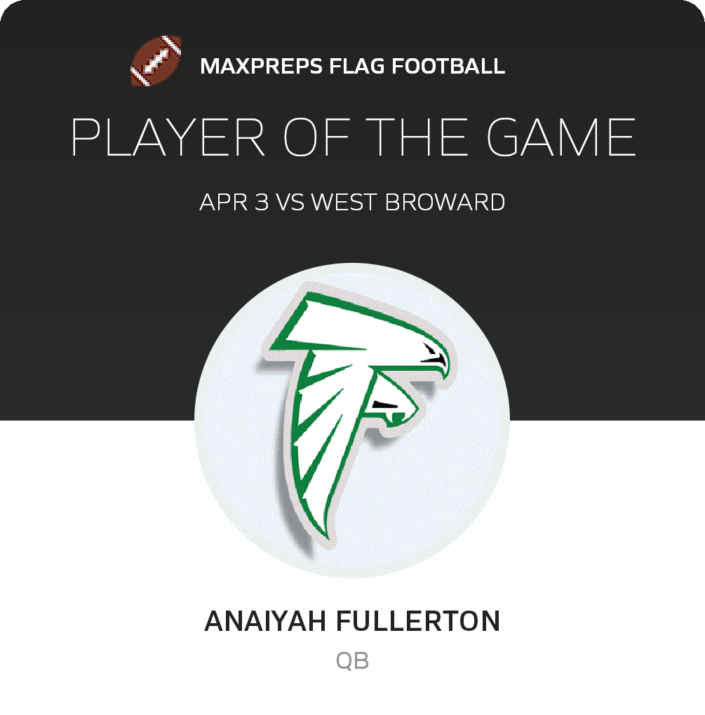 The Flanagan (Pembroke Pines, FL) varsity flag football team won Monday's home non-conference game against West Broward (Pembroke Pines, FL) by a score of 20-0.