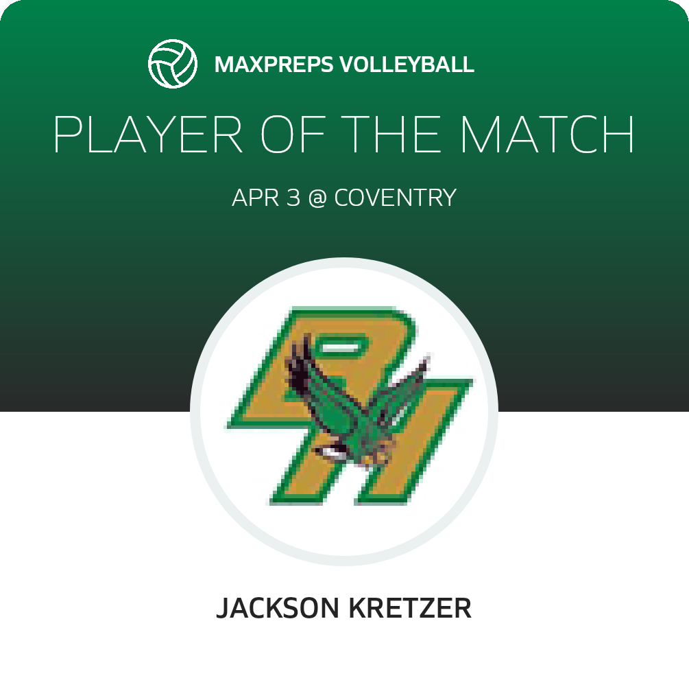 April 3, 2025: Coventry, RI 02816 In Thursday's league match, the Bishop Hendricken Hawks (Warwick, RI) volleyball squad prevailed the host Coventry Oakers (Coventry, RI), by a final score of 3-1.