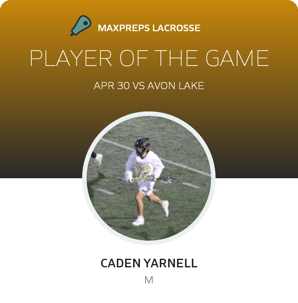 Congratulations to #72/9 Caden Yarnell for being selected the Perrysburg JV Lacrosse Player of the Game.