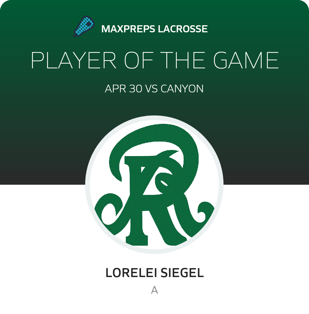 Congratulations to #3 Lorelei Siegel for being selected the Reagan Girls Lacrosse Player of the Game.