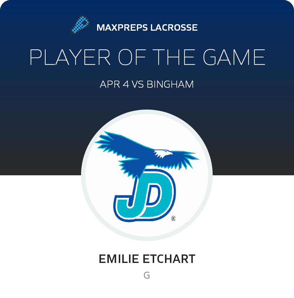 April 4, 2022: Draper, UT 84020 The Juan Diego Catholic Soaring Eagle (Draper, UT) lacrosse the visiting Bingham Miners (South Jordan, UT), 14-10 in Monday's non-league outing.