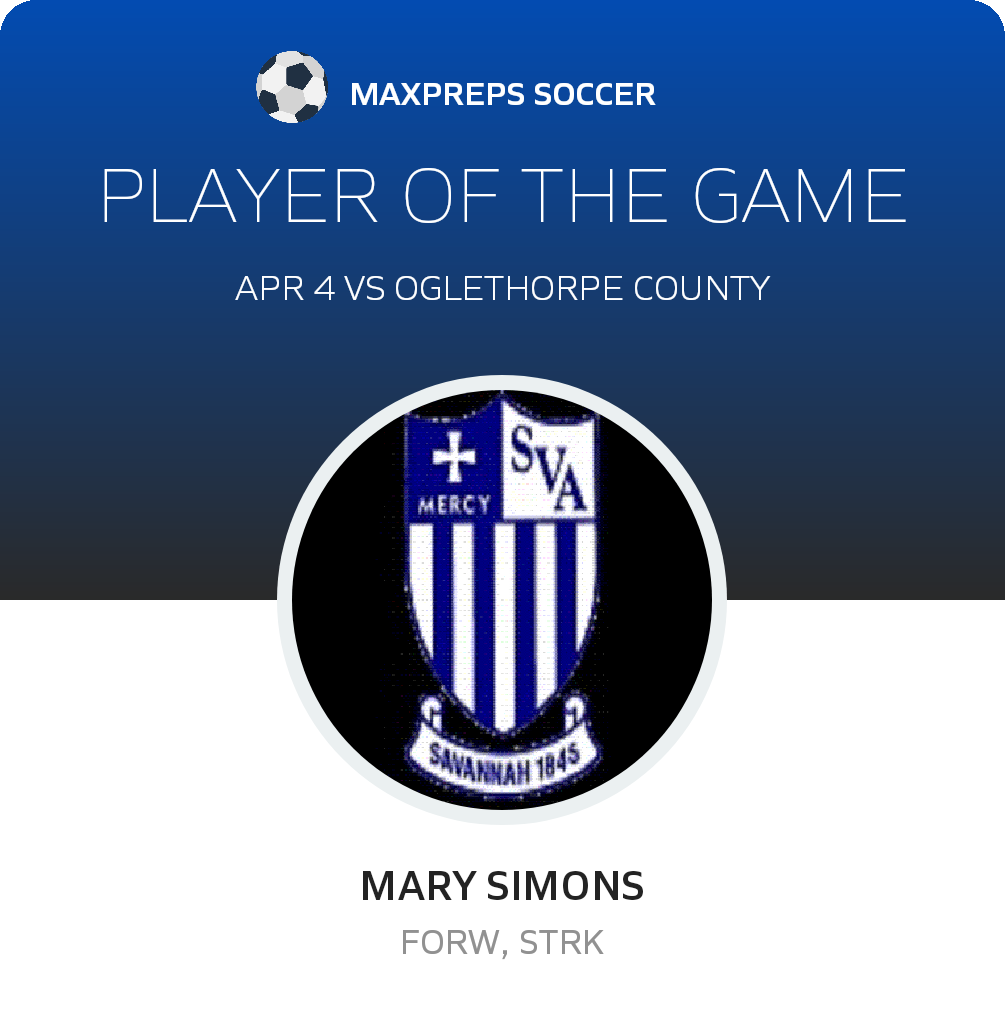 Congratulations to #4 Mary Simons for being selected the St. Vincent's Girls Soccer Player of the Match.