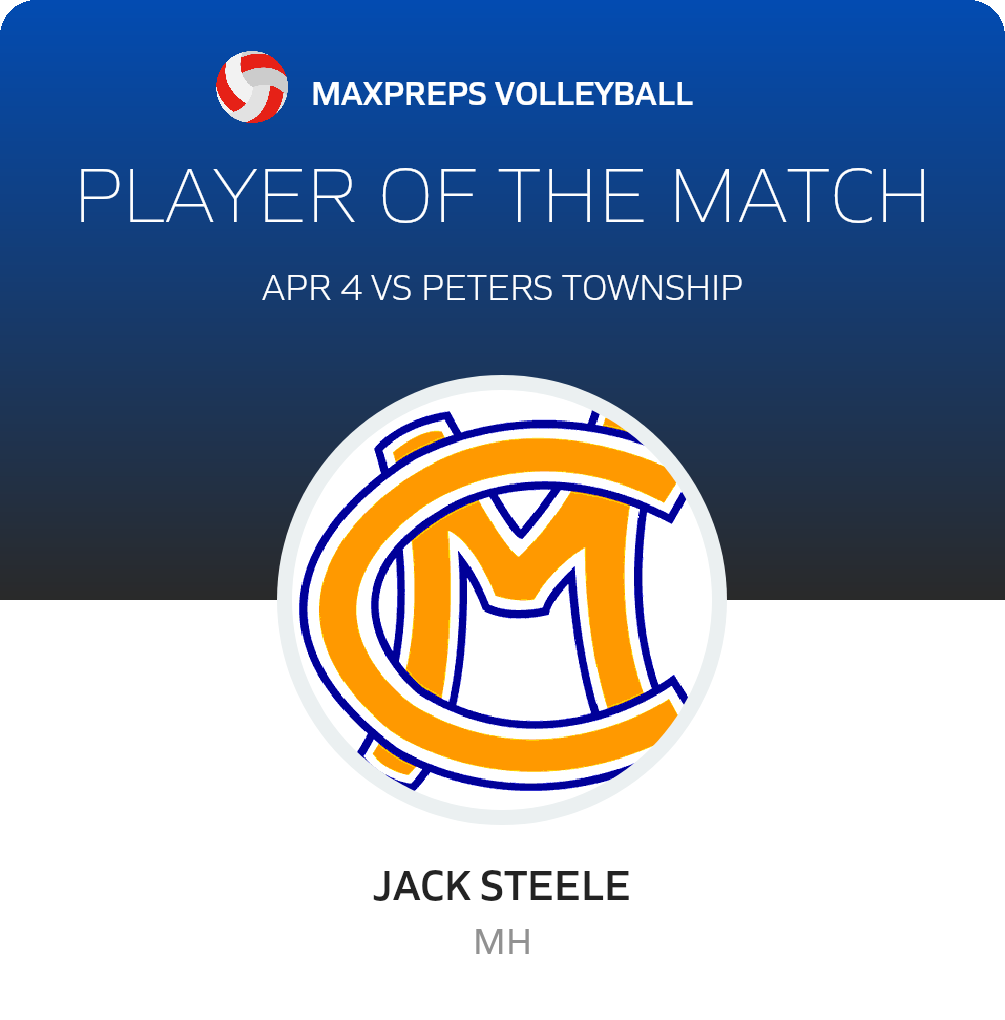 Congratulations to #13 Jack Steele for being selected the Canon-McMillan Boys Volleyball Player of the Match.