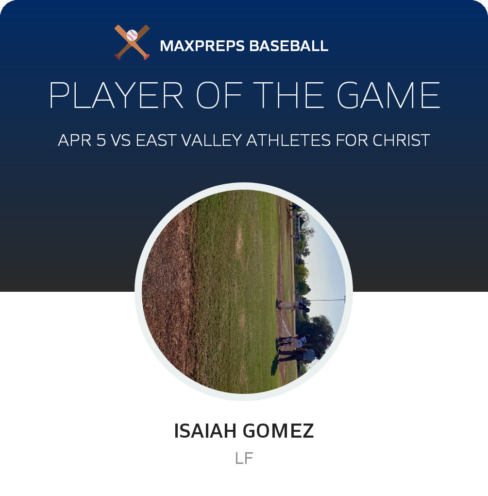 Congratulations to #5 Isaiah Gomez for being selected the Imagine Prep Coolidge Baseball Player of the Game.