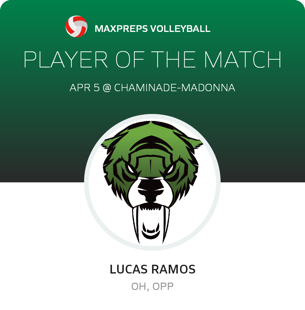 April 5, 2022: Hollywood, FL 33021 The St. Brendan Sabres volleyball team (Miami, FL), was edged 3-2 in Tuesday's non-league challenge with the host Chaminade-Madonna Lions (Hollywood, FL)