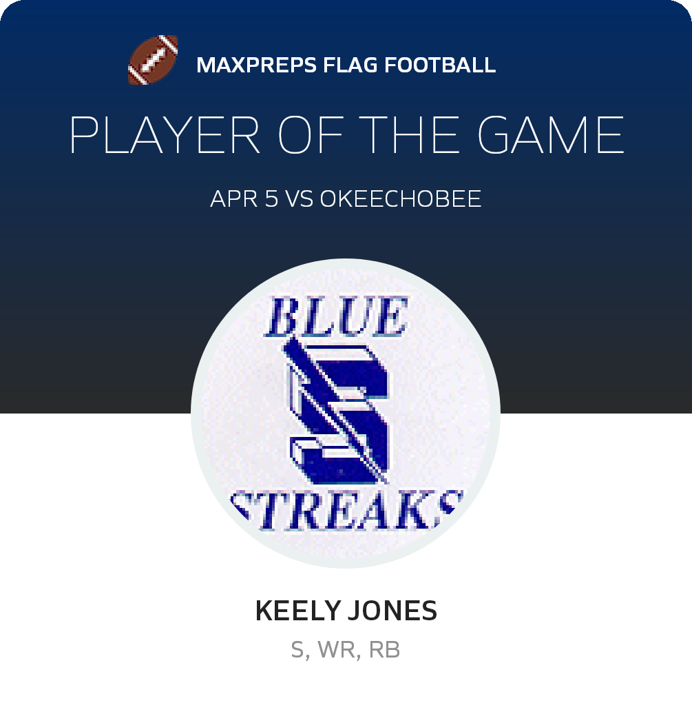 Congratulations to #7 Keely Jones for being selected the Sebring Girls Flag Football Player of the Game.