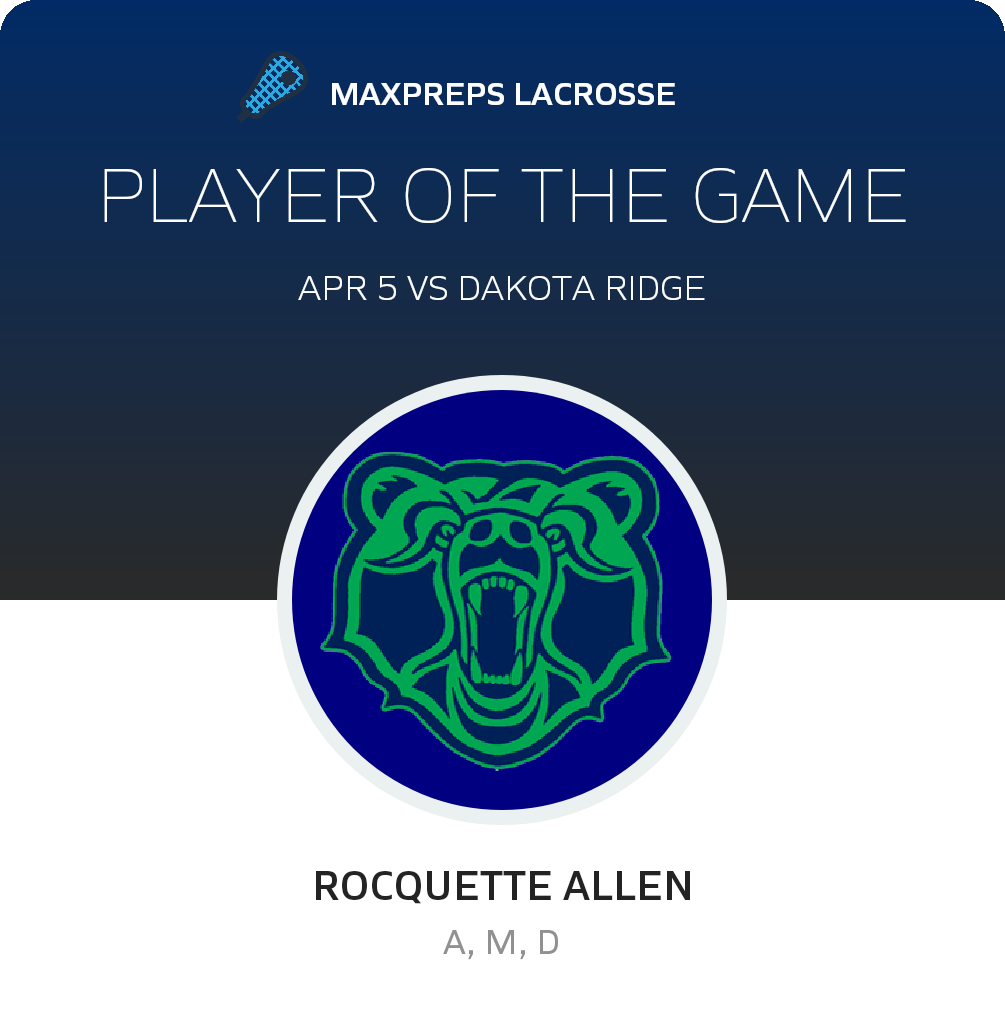 The Grizzlies now have a 2-3 record. They take the field next when they travel to Kent Denver for a non-league test on Thursday, April 7. ThunderRidge will face a Sun Devils squad coming off a 18-17 non-league win over Evergreen (Evergreen, CO). The Sun Devils record now stands at 2-1.