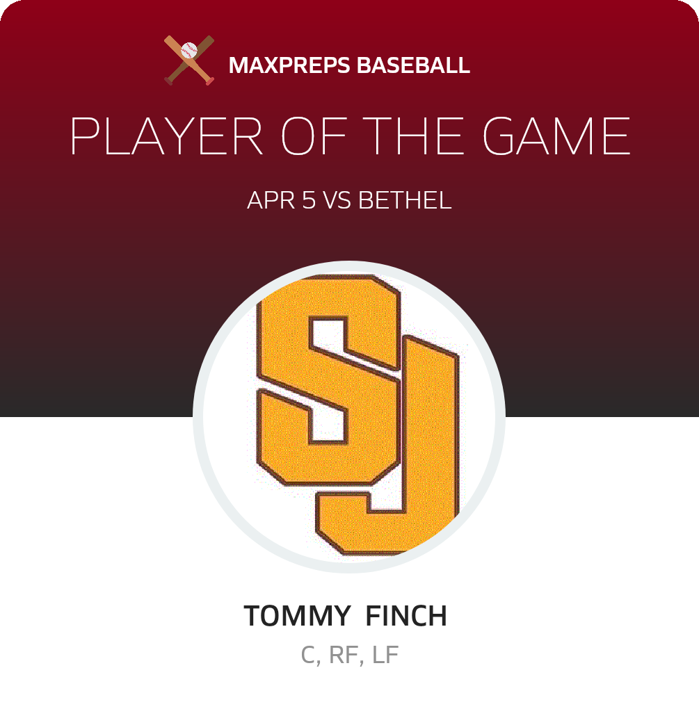 Congratulations to #10 Tommy Finch for being selected the St. Joseph Freshman Baseball Player of the Game.