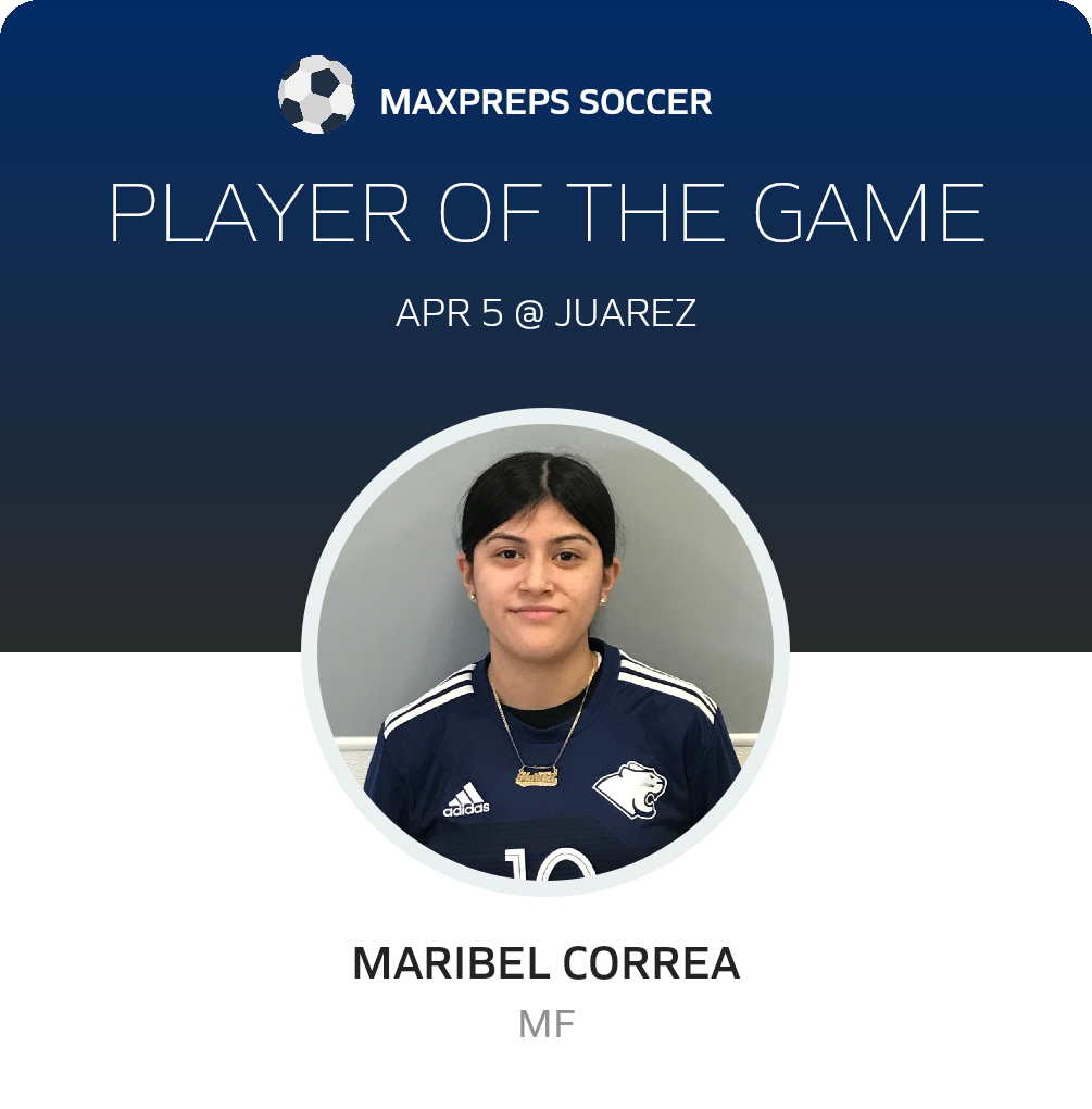 Congratulations to #10 Maribel Correa for being selected the Chicago Academy Girls Soccer Player of the Match.