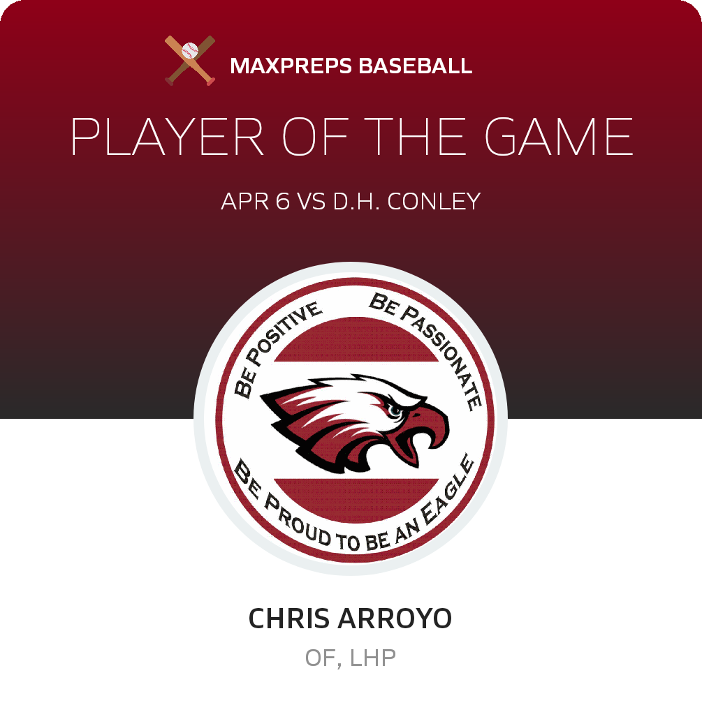 April 6, 2022: Greenville, NC 27858 The Stoneman Douglas Eagles baseball team scored 15 runs and limited the host D.H. Conley Vikings to 0 in the Eagles non-league victory on Wednesday.
