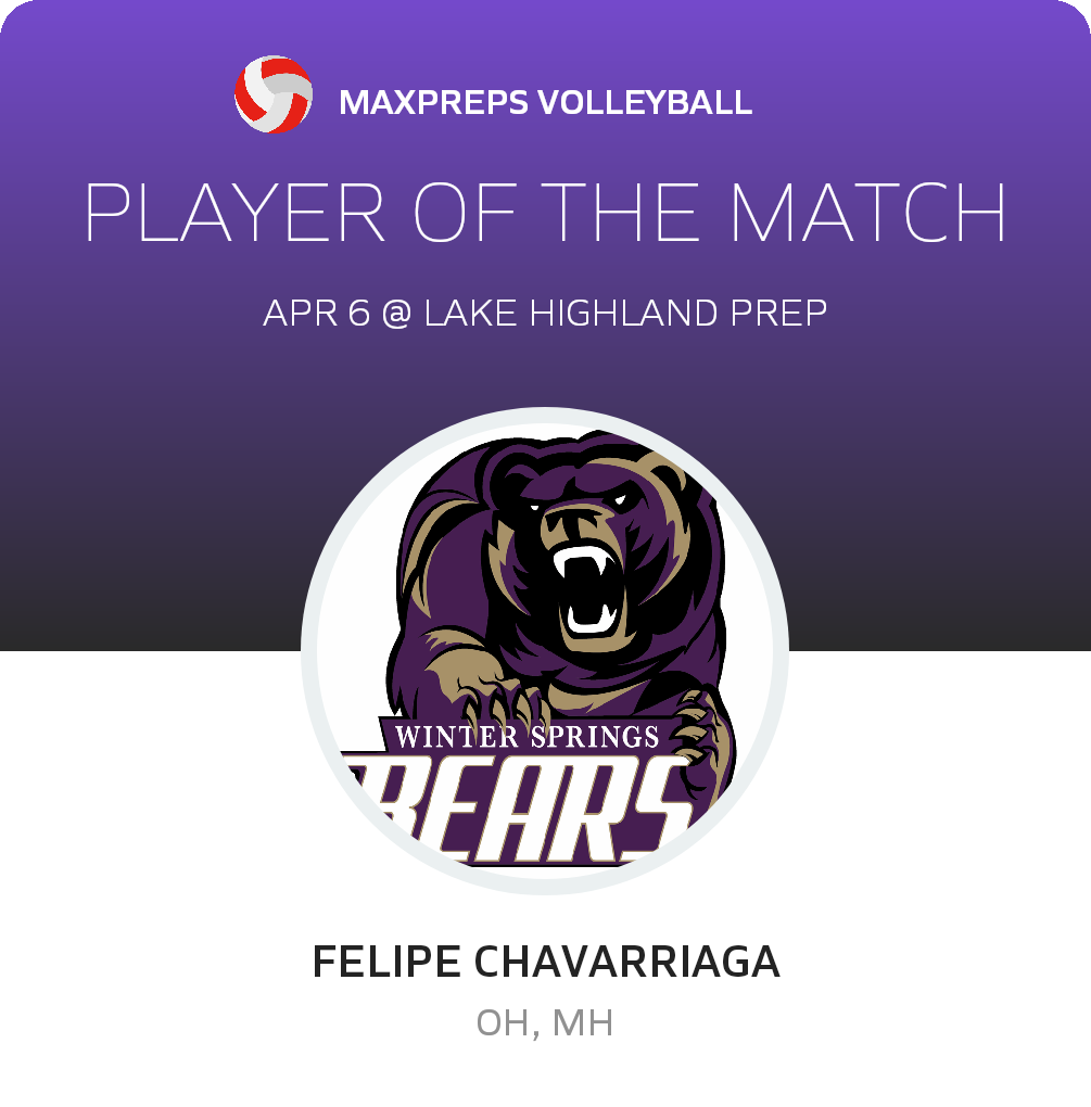 April 6, 2022: Orlando, FL 32803 The Lake Highland Prep Highlanders volleyball team (Orlando, FL), went down 3-1 in Wednesday's non-league challenge with the visiting Winter Springs Bears (Winter Springs, FL)