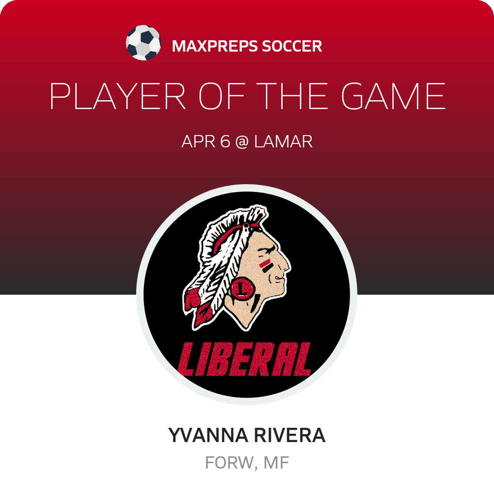Congratulations to #17 Yvanna Rivera for being selected the Liberal Girls Soccer Player of the Match.