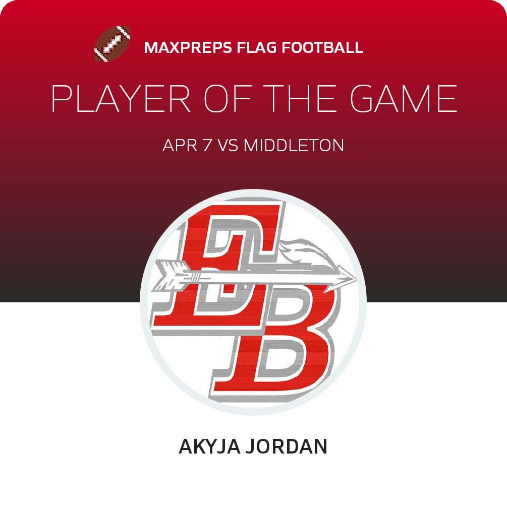 Congratulations to Akyja Jordan for being selected the East Bay Girls Flag Football Player of the Game.