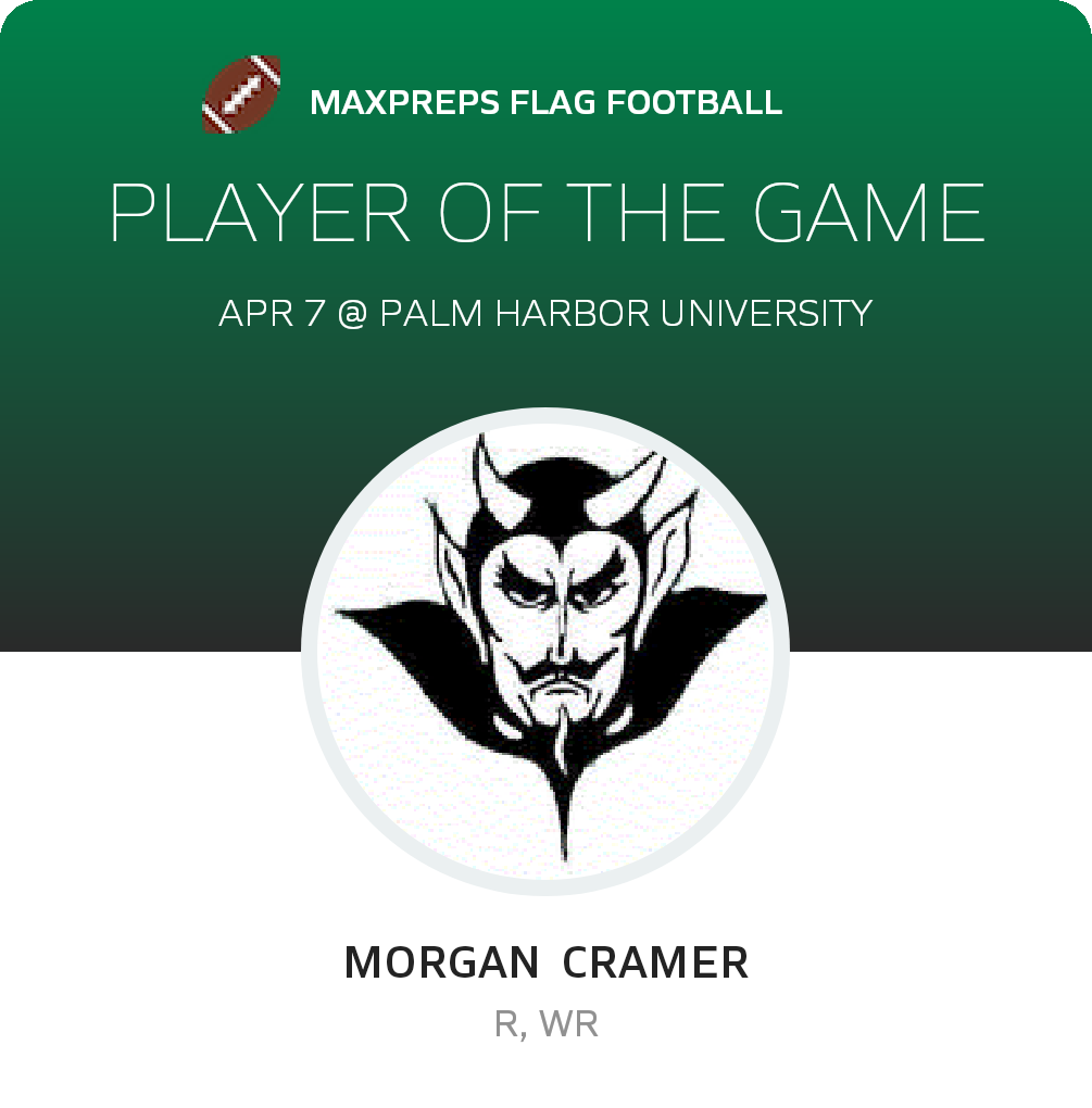 Congratulations to #1 Morgan Cramer for being selected the St. Petersburg Girls Flag Football Player of the Game.