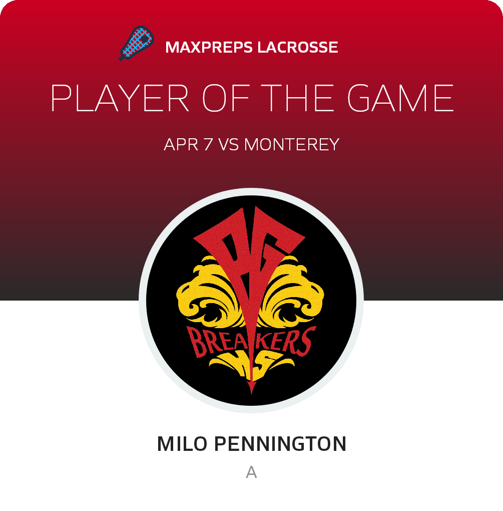 April 7, 2022: Pacific Grove, CA 93950 In Thursday's league contest, the Pacific Grove Breakers (Pacific Grove, CA) lacrosse squad routed the visiting Monterey Dores (Monterey, CA), by a count of 8-1.