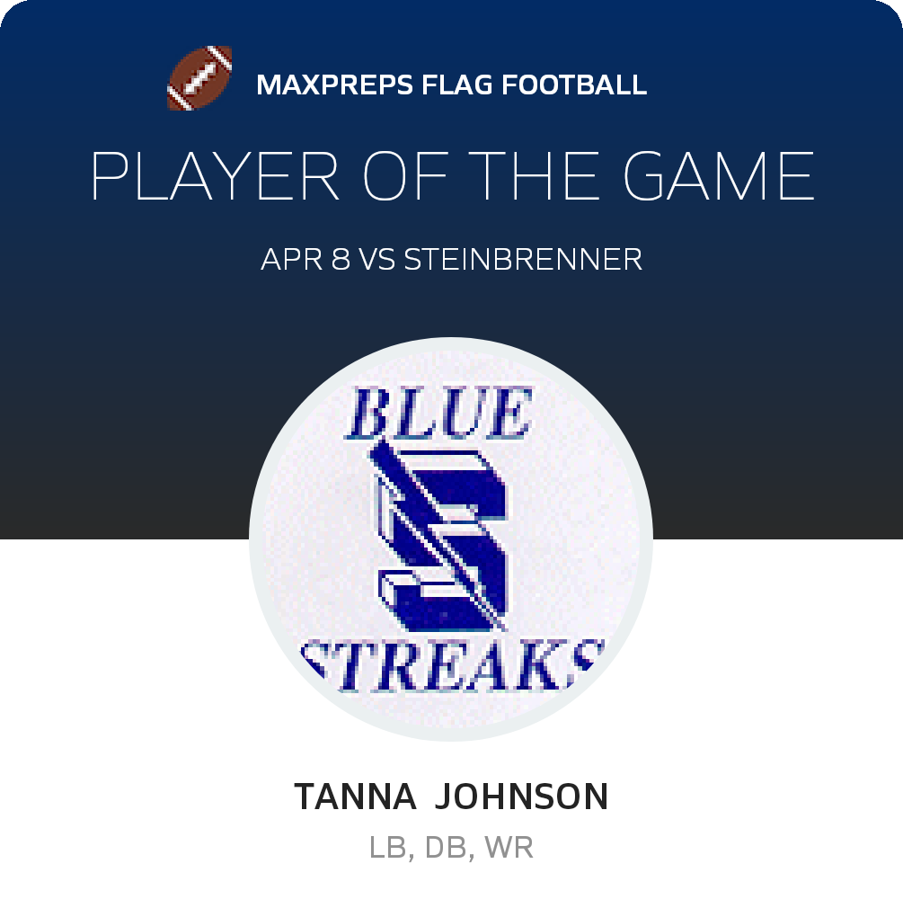 Congratulations to #25 Tanna Johnson for being selected the Sebring Girls Flag Football Player of the Game.