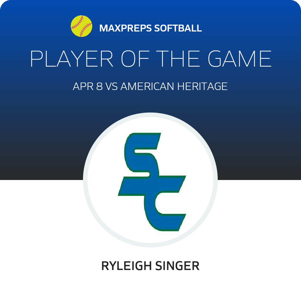 April 8, 2024: Boynton Beach, FL 33472 In Monday's league contest, the American Heritage Stallions (Delray Beach, FL) softball team the host Somerset Academy - Canyons Cougars (Boynton Beach, FL), by a margin of 4-0.