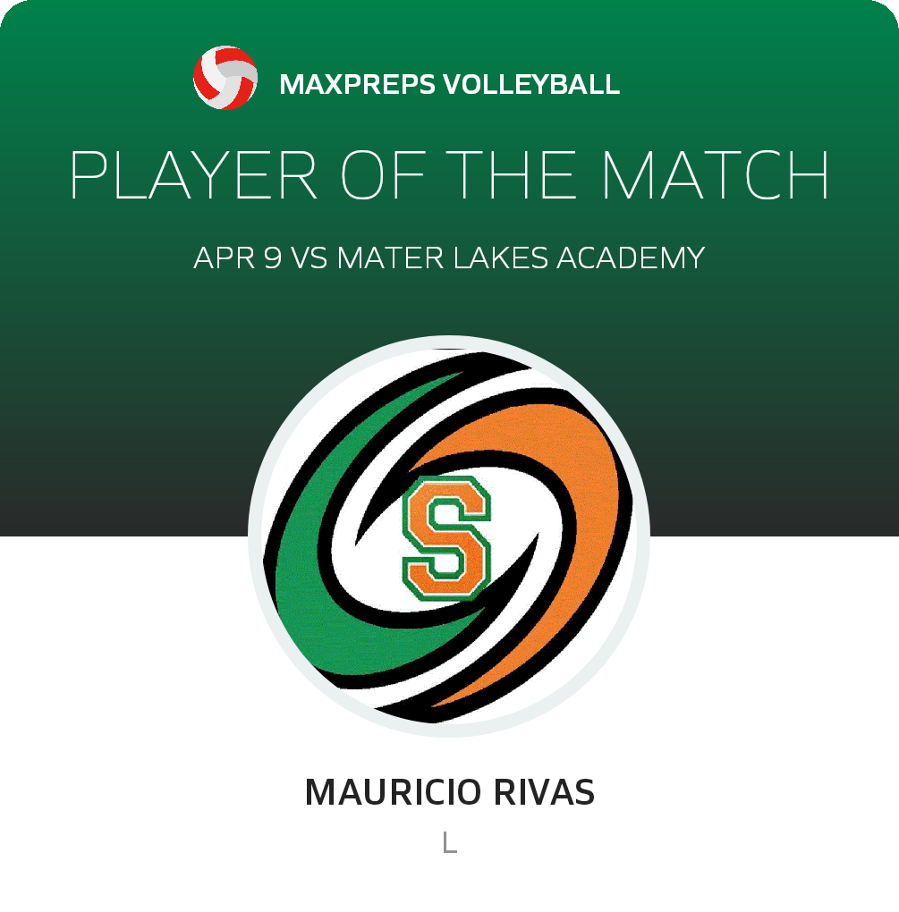 Congratulations to #4 Mauricio Rivas for being selected the Somerset Academy South Homestead Boys Volleyball Player of the Match.