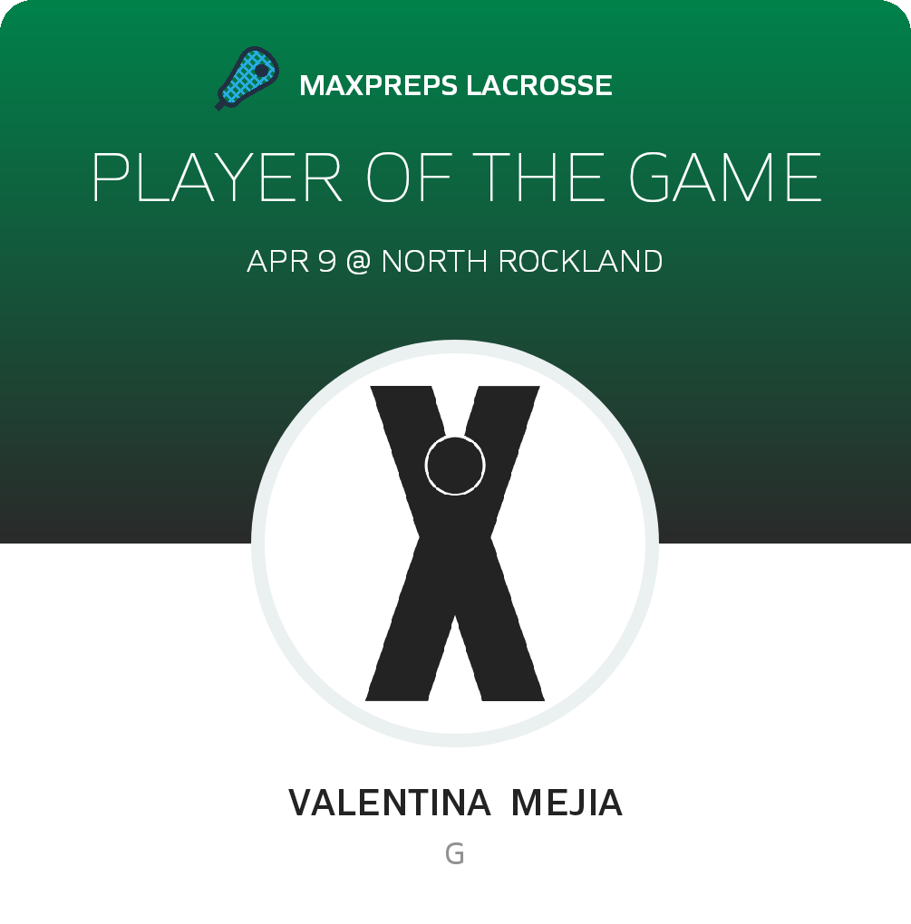 Congratulations to #33 Valentina Mejia for being selected the Lakeland-Panas Girls Lacrosse Player of the Game.