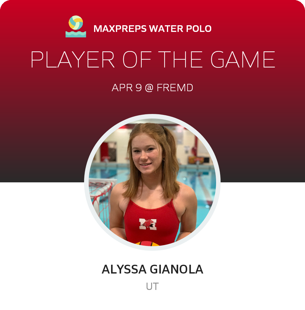 Congratulations to #17 Alyssa Gianola for being selected the Maine South Girls Water Polo Player of the Game.