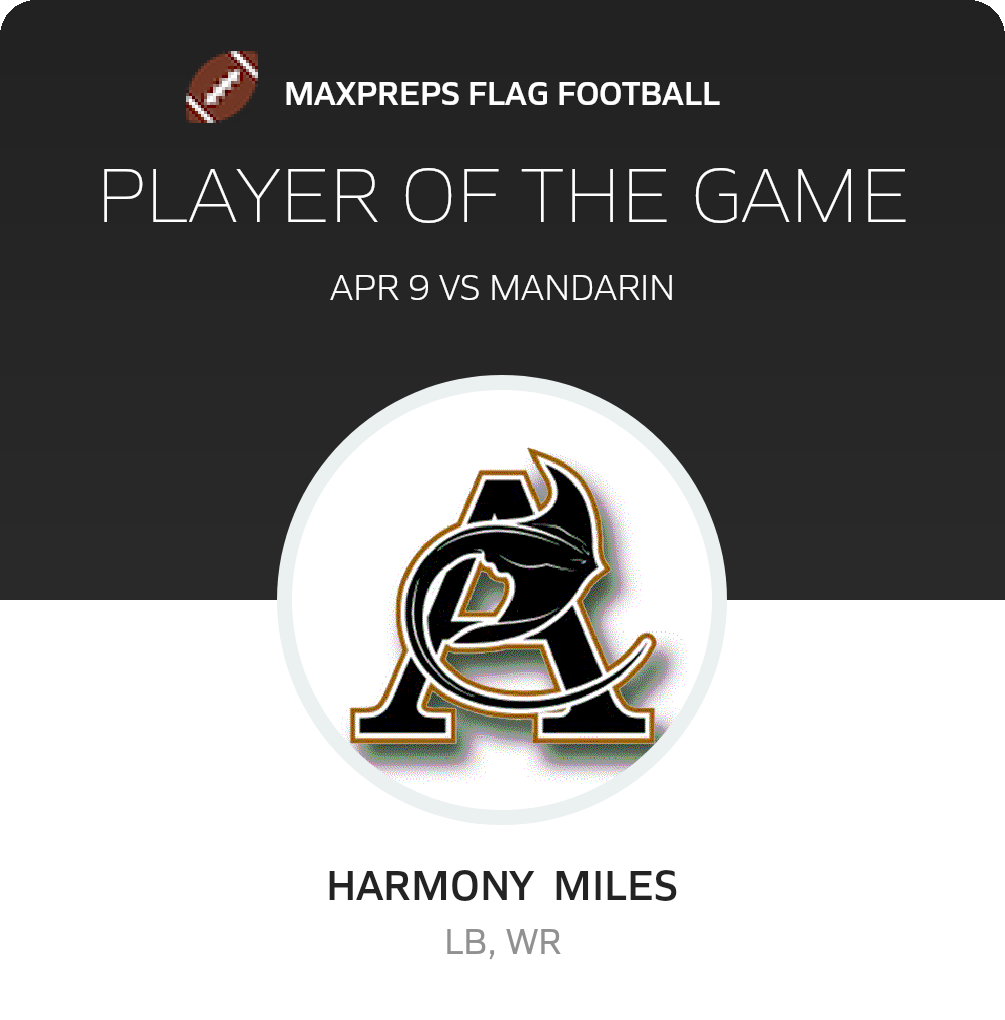 Congratulations to #10 Alexis Pabon for being selected the Mandarin Girls Flag Football Player of the Game.