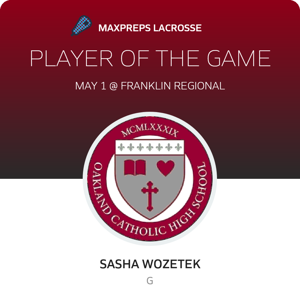 May 1, 2024: Murrysville, PA 15668 In Wednesday's league contest, the Oakland Catholic (Pittsburgh, PA) lacrosse squad the host Franklin Regional Panthers (Murrysville, PA), by a count of 9-5.