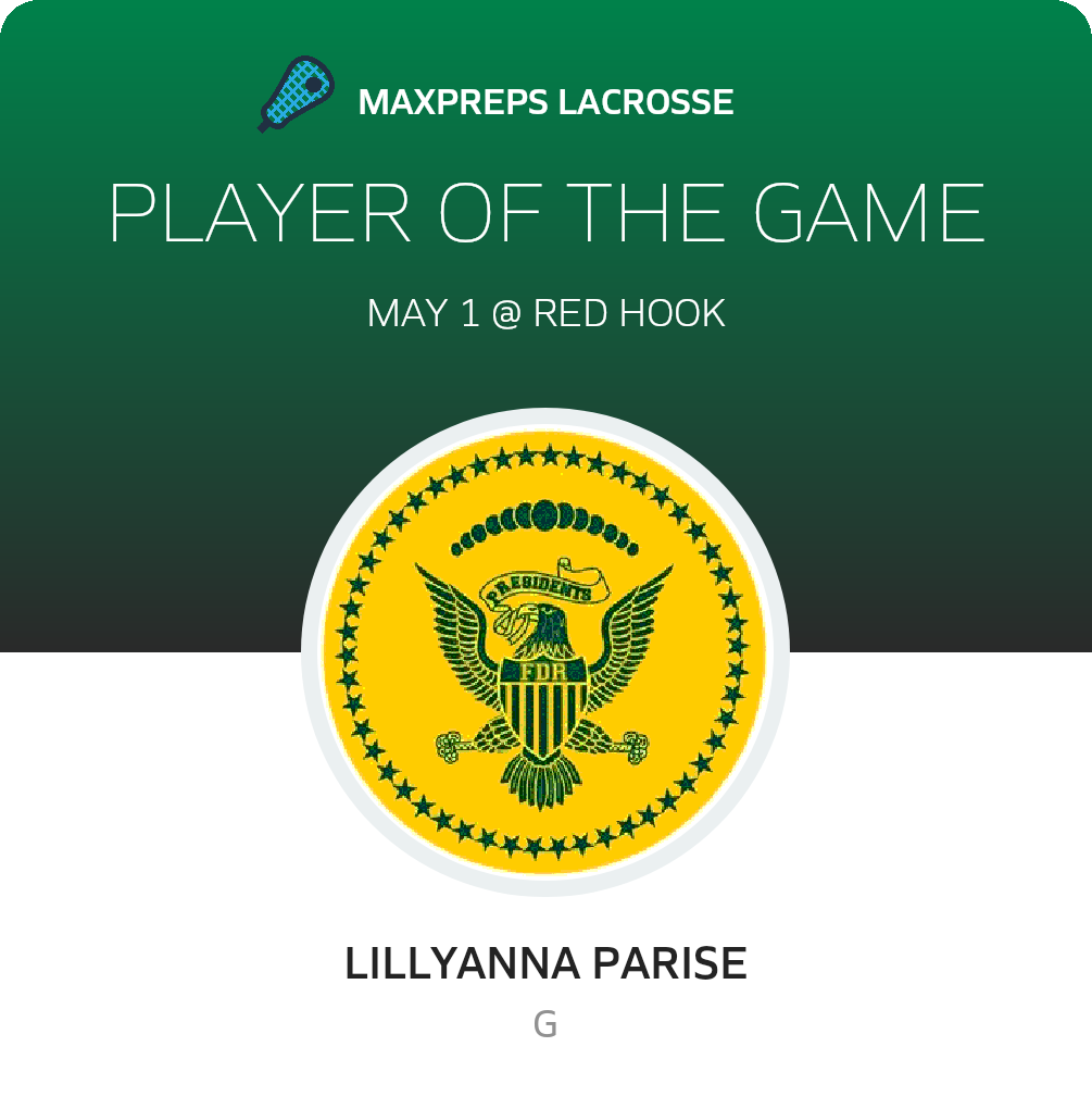 Congratulations to #23 Lillyanna Parise for being selected the Roosevelt Girls Lacrosse Player of the Game.