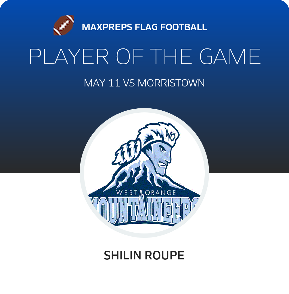 Congratulations to #1 Shilin Roupe for being selected the West Orange Girls Flag Football Player of the Game.