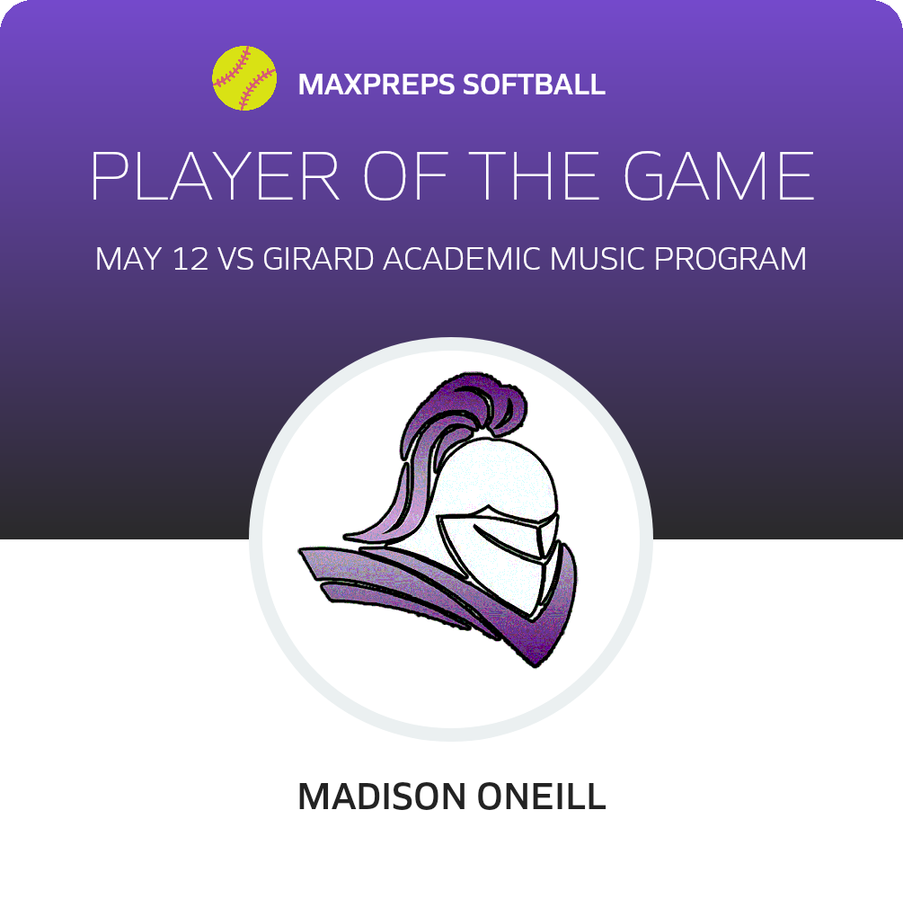 Congratulations to #16 Madison ONeill for being selected the Arts Academy at Benjamin Rush Softball Player of the Game.