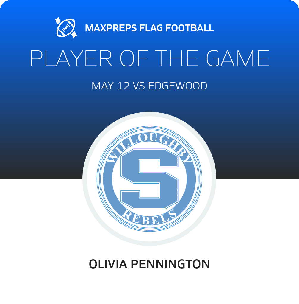 Congratulations to #13 Olivia Pennington for being selected the South Girls Flag Football Player of the Game.