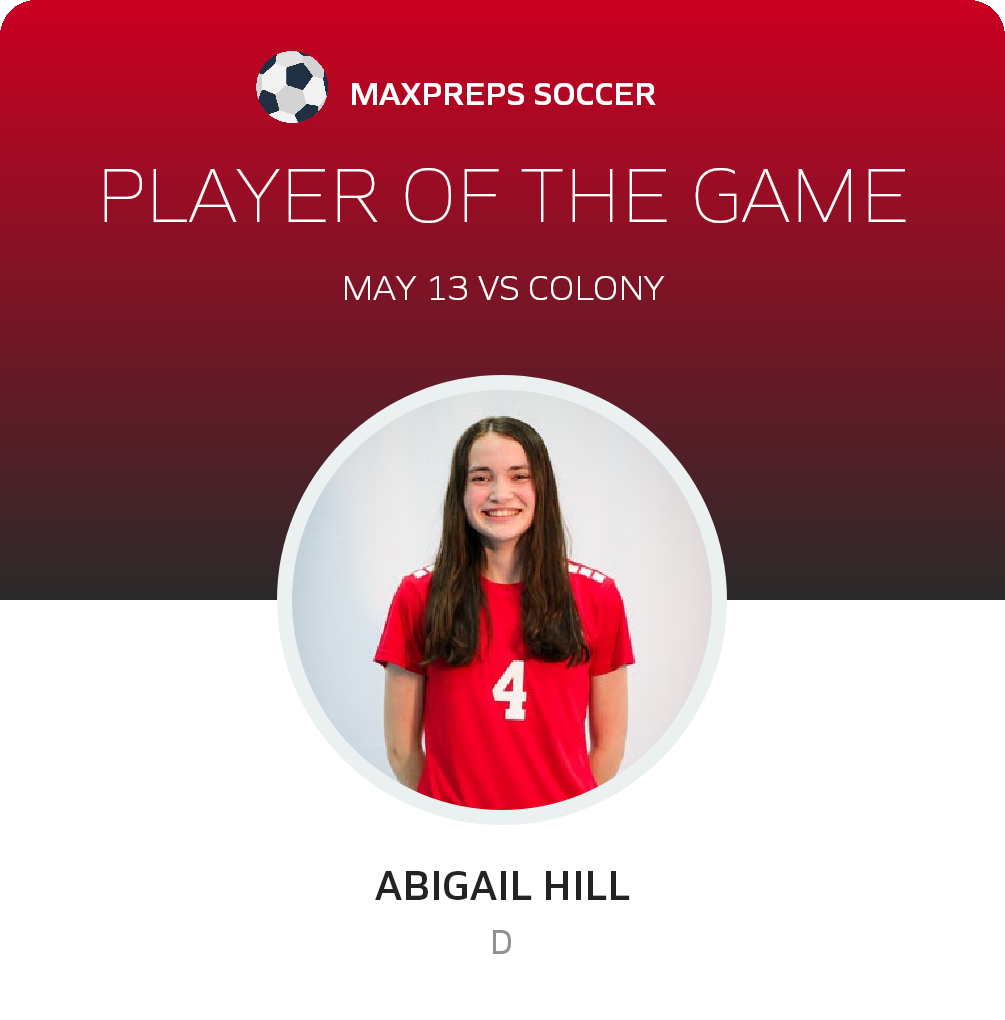 Congratulations to #4 Abigail Hill for being selected the Wasilla Girls Soccer Player of the Match.