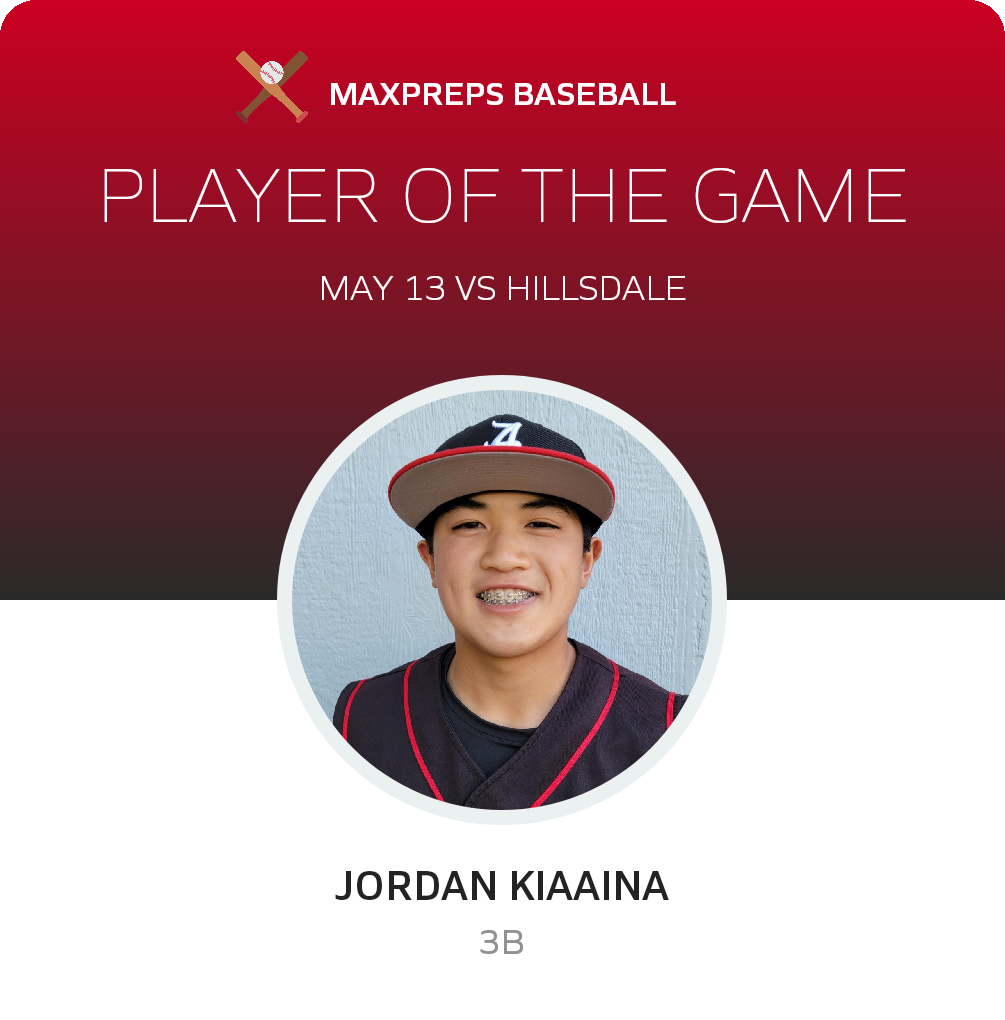 Congratulations to #5/1 Jordan Kiaaina for being selected the Aragon JV Baseball Player of the Game.