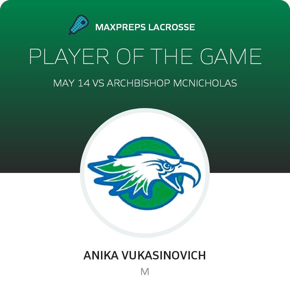Congratulations to #22 Anika Vukasinovich for being selected the Chaminade Julienne Catholic Girls JV Lacrosse Player of the Game.
